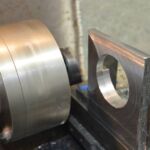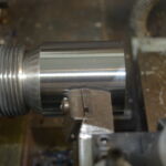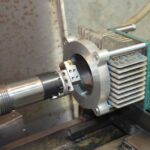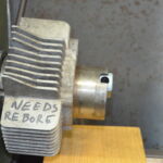 I had some Aermacchi cylinders which needed boring. I don’t have a cylinder boring machine and there are no suitable workshops in the near vicinity of where I live in rural Spain. I had no option but DIY, The cylinder length was a bit long to do it conveniently in my Bridgeport milling machine, so I turned to my lathe. I could easily have mounted the cylinder on a face plate and bored it that way but it is not always easy to avoid getting a slight taper in the bore. Instead of rotating the cylinder I choose to rotate the tool, except for tool wear this ensures accurate machining, dedicated boring machines do it this way. Rigidity is essential for accurate results and, as shown, I made a very solid boring bar and mounting for the cylinder. I used an adjustable boring head to permit easy diameter adjustment.